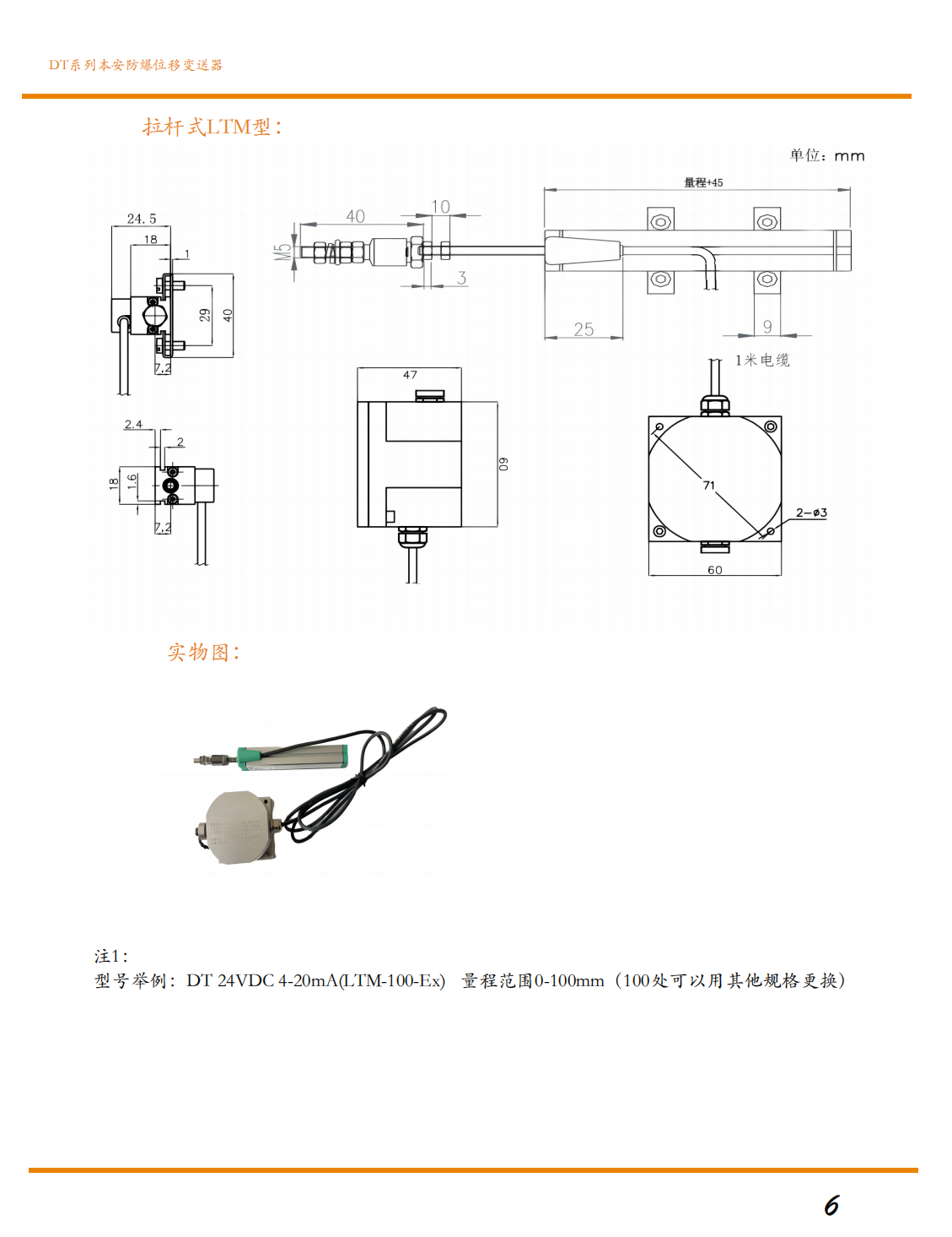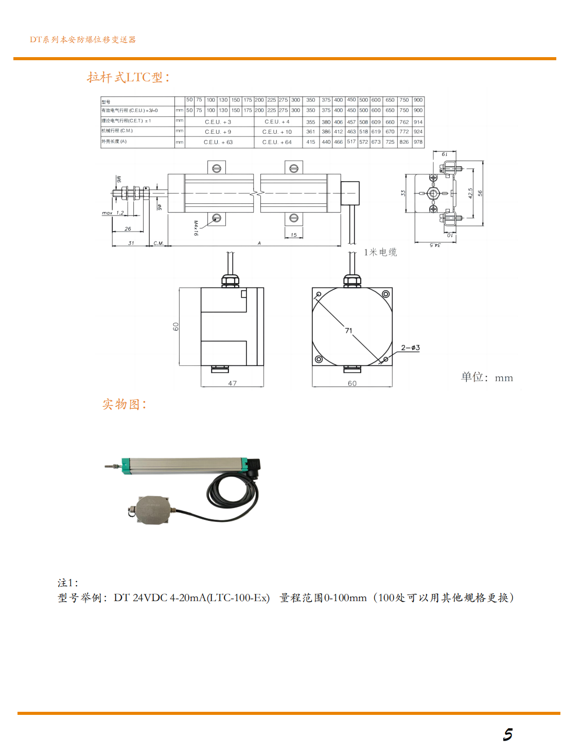 DT防爆位移變送器(以下簡(jiǎn)稱(chēng)傳感器),經(jīng)國(guó)家防爆電氣產(chǎn)品質(zhì)量監(jiān)督檢驗(yàn)中心(CQST)檢驗(yàn)合格,并取得了“防爆合格證”,防爆標(biāo)志為Ex ia IIC T5 Ga,防爆合格證號(hào)為CNEx20.1164x。